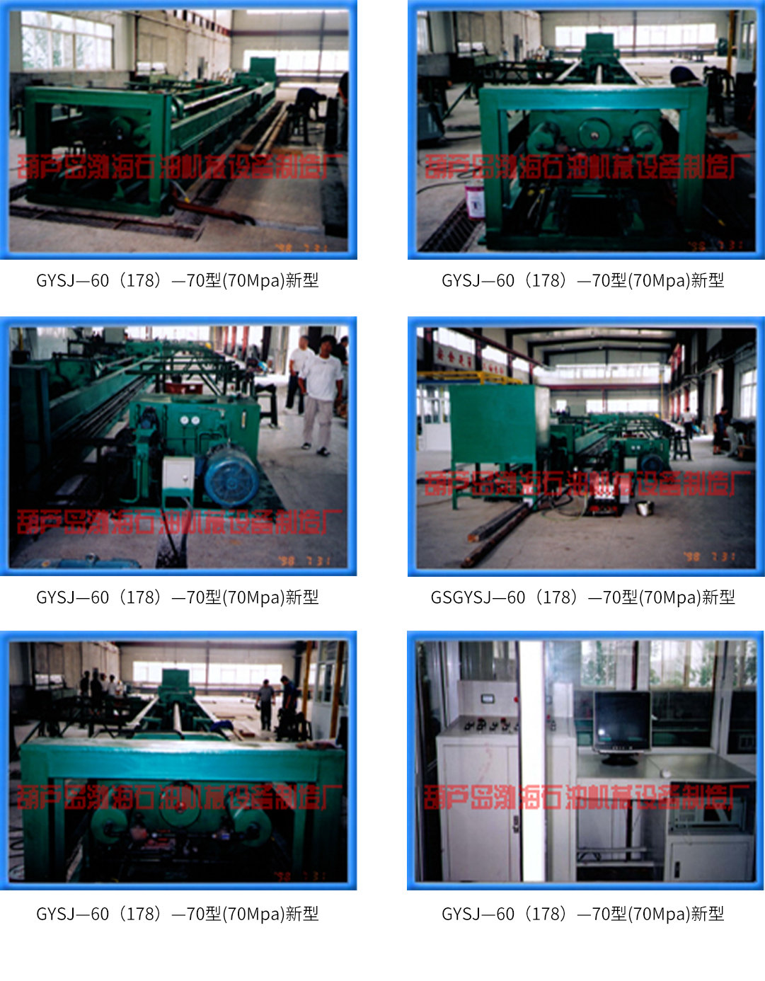 GYSJ—60/178—70型油(套)管試壓機是我廠研制開發(fā)的又一新型試壓機,我廠將以滿足用戶需求為宗旨,不斷將更好的產(chǎn)品推向市場,為油田建設(shè)服務(wù)。